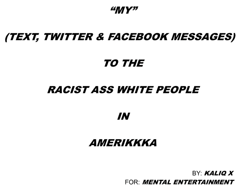“MY” (TEXT, TWITTER & FACEBOOK MESSAGES)TO THE RACIST ASS WHITE PEOPLE IN AMERIKKKA